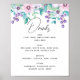 Dryckesmenyn för lila och rosa blommigt bröllop poster. Lämpligt för födelsedag, årsdag och andra party. Kontakta mig om du behöver fler artiklar.