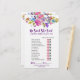 Denna lila- och rosa-blomma "sa hon" är perfekt för en möhippa med blommigt tema. På framsidan av spelkortet står det "hon sa", vilket är en roligt fråga om bruden och brudgummen. Kortets baksida innehåller en ord-sökning med bröllop-relaterad ord och fraser. Utformningen har en skarp magenta, rosa, lila och blåa blommor och ett vackert fet skript. Anpassa spelkortet med briderna namn och möhippa. Kontakta mig om du behöver några designanpassningar. Designad med vård av Miriam på Fresh & Yummy Paperie. Om du vill samordna saker kan du besöka min Zazzle-butik: