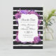 Lila och rosa blommor. Svart randigt bröllop Spara Datumet