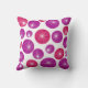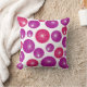Dekorativ kudde har en modern utformning av lila- och rosa-cirklar i mitten av århundradet med vita stjärnor i dem, alla på en vit fält.