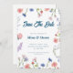 Den lila och rosa vildblommans ram sparar datum med en charmig design med en ram av livfulla lila och rosa vildblommor, perfekt för att tillkännage din speciella dag med en touch av romantisk elegans och naturlig skönhet.