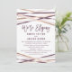 Detta lila och roséguldslingor "vi rymmer"-kort är perfekt för en modern efterfest efter att ha rymt. Den chic designen har korsande linjer i plommonlila, lila rosa och falskt roséguld-folie för ett geometriskt utseende. RSVP-kort säljs separat.