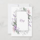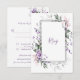 Ömtåliga lila och rosa akvarellblommor med mörkgröna och lila blad och stjälkar omger ett dubbelt ram-RSVP-kort. Matchande bröllopsinbjudningar finns tillgängliga. Lätt att anpassa med din egen information med en blandning av moderna och kalligrafiska teckensnitt. Om du behöver hjälp eller vill ha denna design på en annan produkt, vänligen maila mig på shutterbug600@yahoo.com