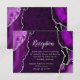 Färdigställ din brölloppsbrevpapperssvit med detta eleganta mottagningskort med en lila agat-marmordesign som accentueras med lyxiga silverdetaljer. Den djärva geod-inspirerade bakgrunden skapar en dramatisk och sofistikerad look, perfekt för höst- och vinterbröllop, formella firanden eller glamourösa kvällsevent. Designad för att ge gästerna information om mottagningen, såsom cocktails, middag och dans, passar detta inklusionskort vackert med matchande inbjudningar. Den rena, moderna typografin håller dina detaljer lätta att läsa samtidigt som den kompletterar den organiska agat-strukturen. Personalisera enkelt all text för att passa dina bröllopsdetaljer och skapa en sömlös och stilfull upplevelse för dina gäster.