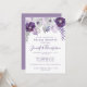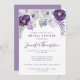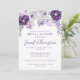 Inbjudan innehåller ljus och mörk lila vattenfärgsblommor, löv och silver blommigt inslag. Kopian är helt redigerbar. Du kan också ändra teckensnittet. Kortet har matchande inbjudningar, kuvert, etiketter och frimärke. Gör alla dina bröllop-objekt koordinerade!
