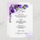 "Överraska dina gäster med vår vackert designade bröllopsmeny, som visar upp eleganta lila och silver blomsterdekorationer mot en förfinad elfenbensbakgrund. En perfekt blandning av sofistikation och stil för din speciella dag."
