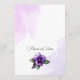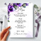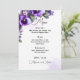 "Överraska dina gäster med vår vackert designade bröllopsmeny, som visar upp eleganta lila och silver blomsterdekorationer mot en förfinad elfenbensbakgrund. En perfekt kombination av sofistikation och stil för din stora dag."