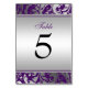 :: Ändra numret för varje bord som du behöver och lägg till ett i taget i kundvagnen:: Elegantens lila och bordsnumren i silver bröllop. Ett modernt fuktmönster från flodvågen silver. Anpassa enkelt för din bröllopsdag. Mujka Design blomstrar. Mönster är platta tryckta illustrationer/grafik - INTE FATUAL SILVER.