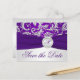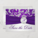 Lila och silverdamast Spara datum-kort Meddelande Vykort