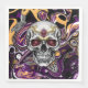 Día de Muertos eller Halloween fest papper tallrikar i svart, lila, guld med en sockerskalle.