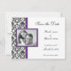 Lila och svarta damast-sparadatum-fotokort spara datumet