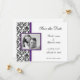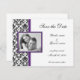 Svarta damast-sparadatum-kort med en lila ram runt ditt foto. Formella kort med medföljande kuvert.