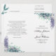 Lila och turkosa blommor. Bröllopsprogram vikt