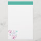 Turquise rand överst och en grupp fjärilar vid grund på två nyanser av lila och turkos