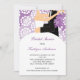 Starta från högerna med trendigets silhuette brud & groom på lila och vit blommigt Inbjudningskort för möhippan. Anpassa vår inbjudan med din bröllop-information så är du redo att gå. ©Jessica Weible