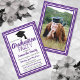 Skicka ut den här inbjudan till Lila och White Photo Studentfest till vänner och familj för att fira högskolans eller college student prestation. Anpassa den med namn, skola, party och foto på baksidan. Den här charmerande skolandan inbjudan har vit och lila färg med ett feminininskript.