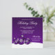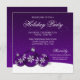 Lila och silver julfestinbjudningar. En modern inbjudan till julfest med lila julgransprydnader på en snöbakgrund. Formell och elegant - perfekt för företags julfest, företags julfirande, företags julparty och mer! Anpassa enkelt med din evenemangsinformation.