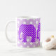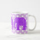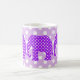 En lila- och vitpolka pricker silhouettemönster tar forma av en elefant. Designen är fastställd mot en pastellfärgad purpurfärgad bakgrund med vit pricker.