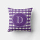 Lila och White Gingham Monogram Kudde