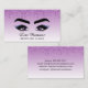 Gör ett bra intryck med det här chic affärskortet med lila faux glitter drops, ett exempel på lila ögon med glittrad öga skuggor och dramatiska ögonbryn och ögonfransar, och ditt namn i ett skript mot lila ombre bakgrund. Lägg till kontaktinformationen på baksidan. Perfekt för professioneller i skönhetssalonger, makeup artists, hårstilists, estetiker och professioneller som tillhandahåller lash- och ögonbryn