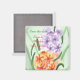 Vackra lila och orange hyacintblommor på Spara datum-magneter för bröllop. Denna vackra akvarellmålning ger en mjuk och romantisk look. Texten kan enkelt anpassas på mallformulären. Tack för att du handlar på CherylsArt på Zazzle. Det finns matchande artiklar i butiken.