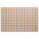 Fabric med ett originalkontrollerbart Plaidwerx-plattat mönster i skarp lila, orange och kalkgrön, med blå och vit accent. Mönster upprepar var 2:e tum. Speciell order större via https://plaidwerx.com/contact.htm