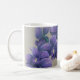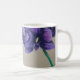 Denna mugg trycks med en handdragen lila- eller chidformgivning.