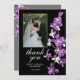 Lila dendrobium orchid-tack du kort är perfekt för ett klassens modernt elegant bröllop. Tack-kortet är designat med hjälp av ett system för svart, grått, lila och grönt färg. Mallen har ett foto på framsidan med ett bildformat på 5 x 7 för bilden. Om du vill anpassa den här designen ännu mer kan du klicka på knappen "personalisera" för att ange dina uppgifter och sedan klicka på knappen verktyg (blå redigeringsdesign) i grund. Matchande objekt är också tillgängliga.