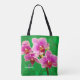 Lila orkidé på grön Totebag Tygkasse