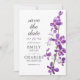 Denna lila dendrobium orkidé-inbjudan är perfekt för ett klassiskt modernt elegant bröllop. Rädda datum-kortet är designat med en vit, grå, lila och grön färgskala. För ännu mer anpassning av denna design, efter att du klickar på "personifiera"-knappen för att ange din information, kan du klicka på den blå redigera designverktygsknappen längst ner. Matchande föremål finns också tillgängliga.