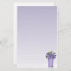 Papperskonstruktion med graderad transparent lila med linjer för handskrivna anteckningar och brev. En vacker bukett av pansier sitter i grund hörnet. Blanda med den samordnande pansy-apparaten i min butik för en trevlig bänk.