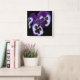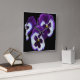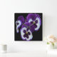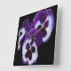 Pansy, med sina funktioner är vackra lilor och vita pansier på svart bakgrund.