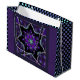 Ett ganska gotiskt mönster i mörkens lila på svart bakgrund, med några ljusare beröringspunkter: ett 7-panelers paraply i snöre med 7 lila hjärtan, sammansatt på olika sätt för ett mystiskt, romantiskt utseende. (💜 några av er kommer också att se från lila färg och 7 att jag är fläkt i en världsgrupp för berömd 💜.)