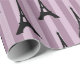 Pastel lila vintage paris eiffel torn med stripe mönster inslagning papper.