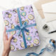 Fira Vår och Påsk med våra vackra Hand-Drawn Colorful Lila Påsk Chicks & Bunny Öron av Nathalie Portet. Denna vackra pappra omslutning har en vit mönster av chickar i baby som bär kanin Öron, Påskägg och små kosmos blommor, handdragna i svart bläck och färgad i mjuka pasteller på en lätt lila polka-prickad bakgrund.
