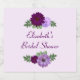 Elegant bröllopsduschdesign med blommor i lila nyanser med eukalyptus och botanisk grönska