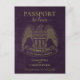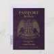 Dessa postkort för att spara datumet är ett roligt sätt att låta dina vänner och familj veta om ditt kommande destinationbröllop. Designade för att likna ett pass, har de en lila läderbakgrund med en gyllene örn på framsidan med bröllopsparrets namn, datum och plats för vigseln. Baksidan liknar insidan av ett pass med ett foto och söta infartsstämplar.
