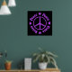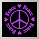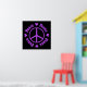 Fred och kärlek poster svart med lila hjärtan och fredstecken.