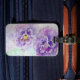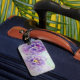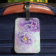 Lila pensé blomma blomster vattenfärg bagagelapp. En strålande blomsterbagagelappdesign. Designad från mina originala vattenfärg-målningar, som jag målade i min egen blomsterträdgård.