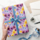 Detta handmålade pensé- presentpapper har frodiga lila, blå och guldfärgade blommor arrangerade i ett romantiskt trädgårdsmönster. Designat utifrån original akvarellkonst av Mary Kunz Goldman, ger det en fräsch och elegant touch till brud shower, trädgårdsfester och vårfirande.