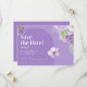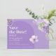 Låt din kärlek komma med personlighet! Det här Spara datumkortet blomstrar med vattenfärgspennor och soliga accenter, kompletterade med ett lekfullt reflexskript. En liten påminnelse från lycklig om att något vackert blåser på kalendern.