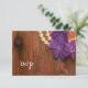 Anpassa Lila för charming och elegant Periwinkle, Pearls och Barn Wood Landsbyggsbröllop OSA Response Card med ditt svarsdatum för giftermål. Denna avböjda anpassningsbar botaniska rustiska chic nuptial r.s.v.p.-kort har en blommigt foto av lila periwinkle eller vinca-blommans blommar, vitpärlhalsband och brunt, avvanda laduvirke med rostigt huvud från nagel.