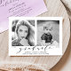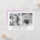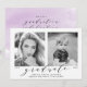 Vår snyggt "Now and then" (nu och då), fotot studentfest inbjudningskort visning ditt student-favoritfotot (nu) samt ett baby- eller småbarn-foto (sedan). Ändra åren under varje foto så att det återspeglar år och födelseår (eller årfoto togs) i studenten. Den moderna studentfesten bjuder in visningen "student" i ett typsnitt av eleganten med student namn, skolans namn och klassåret nedan. På baksidan av inbjudningarna till studentfesten av trendig finns information om party mot en lila vattenfärgsbakgrund.