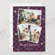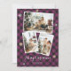 Anpassningsbar lila buffalo har ett fotokollage-God jul-kort med tre foton med snöflingor och stjärnor på en lila och en svart buffelbaksida.
