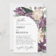 En unik vacker bröllopsinbjudan för den tropiska blommigten med boho-tropisk färg med en fantastisk palett i färg vid lila, plommon, beige (benvit) och grönt. Det lyxiga färg och struktur i denna inbjudan gör det till ett val av perfekt för sommar-, fall- eller vinterbröllop. De vackra blommorna i denna elegant är exotiska proteer, orkidéer, morsa och tropiska löv. Ett trendig som ritas ram i vitt placeras asymmetriskt på sidan med en använda textmall som är enkel att använda. I par av typen ansikte ingår ett modernt handskript och klassiskt serif typsnitt. Baksidan av inbjudan har en fin matchande blommigt i mitten av designen. Anpassa textmallen med information om bröllop.