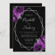 Lila Plum Silver Blommigt Black Bröllop Inbjudningar