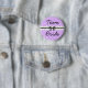 Lila och svarta prickiga teambrud möhippa eller bröllopsdusch knapp.