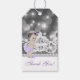 Lila prinsessans babyduschpresenter märkre med den berömvärda baby prinsessan iklädd söt lila och krona på en söt gnistra prinsessans baksida. De här märkrna för söta lilor och grått babydusch är lätta att anpassa med din text. Detta är en tryckt design utan verkliga diamanter, gnistor, rosett band osv.