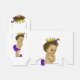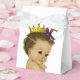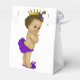 Bedårande prinsessa baby shower presentlådor med afroamerikansk etniskt vintage spädbarn flicka som bär en söt guldkrona och lila båge och rufflade byxor. Du kan lägga till text, ändra färgen på bandet och lägga till en bakgrundsfärg som du väljer till dessa söta lila prinsessa baby shower presentlådor.