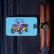 Gå med snabbkörningen med den roligt lila fyrhjulingen i lycklig tecknad stil.
